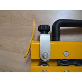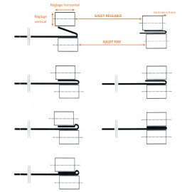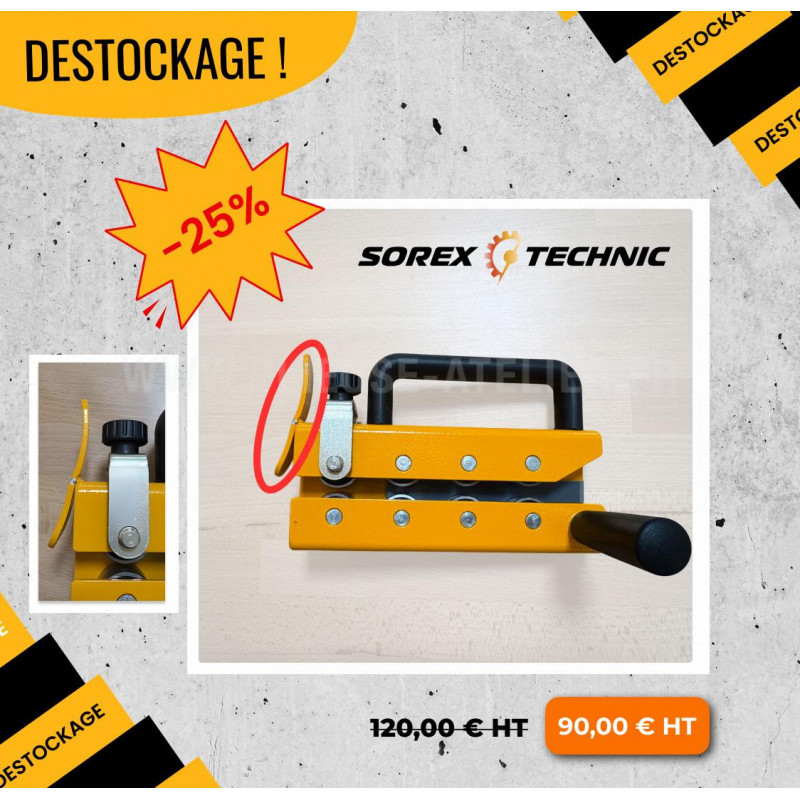 Notre outil à fermer les pinces à 180° avec hauteur ajustable SOREX TECHNIC est équipé de 4 jeux de galets presseurs avec des poids en cascade, permettant une augmentation progressive de la pression sur la tôle. Le premier galet dispose d’un double réglage par molettes (horizontal et vertical), vous offrant un ajustement précis de l’outil selon différentes épaisseurs de tôle, pour réaliser divers types de pinces.